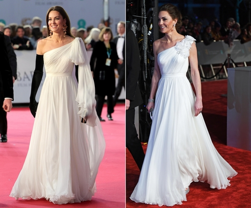 CNN은 캐서린 왕세자빈이 2019년 시상식 때도 착용했던 명품 브랜드 알렉산더 맥퀸의 드레스를 '업사이클링'해 다시 입고 나타났다고 지적했다. 업사이클링이란 버려지거나 사용하지 않는 옷을 새롭게 디자인하는 것을 가리킨다.