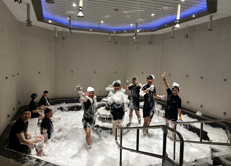 2층에서는 건강 상태 측정 후 해수 풀, 저주파, 해조류 머드 랩핑, 스톤, 향기 등 총 16개의 테라피가 있다.