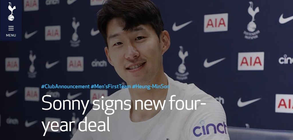 | ▲ 손흥민과 4년 재계약을 발표한 토트넘 [토트넘 홈페이지 캡처. 재판매 및 DB 금지] |