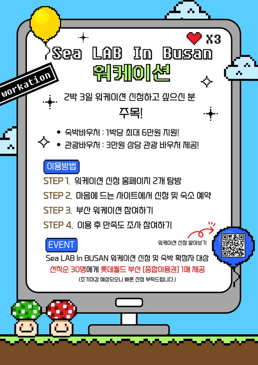 특히 오는 2월 15일까지 워케이션을 신청하고 숙박까지 확정한 선착순 30명에게는 롯데월드 부산 종합이용권 1매를 제공한다.