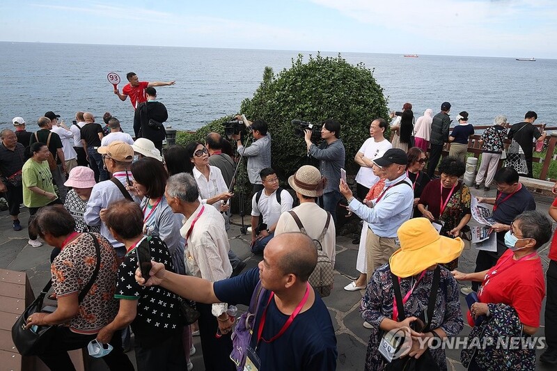| ▲ 용두암 찾은 중국 단체관광객 (제주=연합뉴스) 중국 단체관광객을 태운 크루즈 상하이 블루드림스타호(2만4천782t)가 31일 오후 제주항에 입항했다. 중국 단체관광객들이 제주시 용두암을 찾아 경치를 즐기고 있다. 2023.8.31 [제주도사진기자회] jihopark@yna.co.kr |