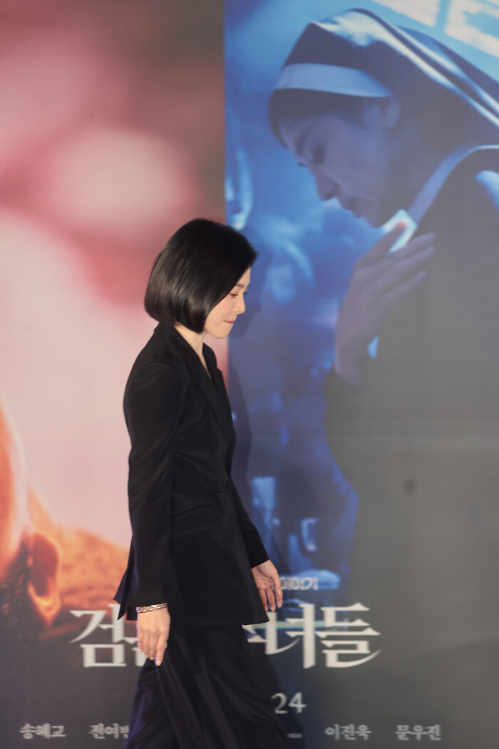 South Korean actress Song Hye-kyo, who stars in the new movie "The Priests 2: Dark Nuns," attends a publicity event in Seoul on Dec. 16, 2024, to promote the movie, set to hit local screens in South Korea on Jan. 24. (Yonhap)