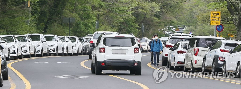 | ▲ 한라산 성판악 입구 일대 갓길 주차 심각 [연합뉴스 자료사진] |