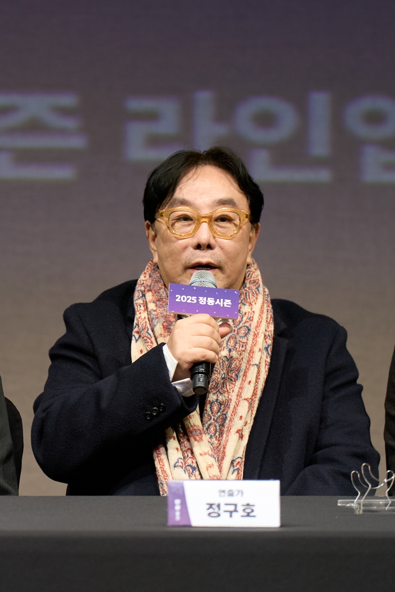 ▲ 국립정동극장 '2025 정동시즌 라인업 발표' 기자간담회 4일 국립정동극장에서 열린 '2025 정동시즌 라인업 발표' 기자간담회에서 정구호 연출가가 질문에 답하고 있다. [국립정동극장 제공. 재판매 및 DB금지]