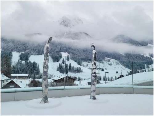 ▲ 양순열 작가, 스위스에서 초대전 = 양순열 작가가 스위스의 휴양지 그슈타드의 후주몽 호텔 리조트에서 초대전을 열고 있다.