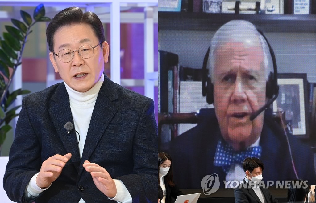 | ▲ 이재명, 짐 로저스와 온라인 대담 (서울=연합뉴스) 더불어민주당 이재명 대선 후보가 20일 오후 서울 성동구 KT&G 상상플래닛에서 세계적인 투자가 짐 로저스와 '대전환의 시대, 세계 5강으로 가는 길'이라는 주제로 온라인 대담을 하고 있다. 2022.1.20 [국회사진기자단] uwg806@yna.co.kr |