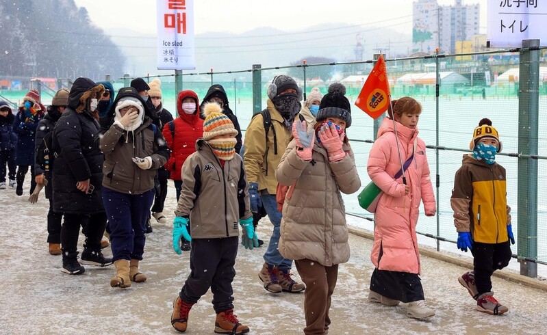 (화천=연합뉴스) 이상학 기자 = 세계적인 겨울 축제로 자리 잡은 화천산천어축제에 겨울이 없는 동남아시아 관광객의 발길이 이어지고 있다.