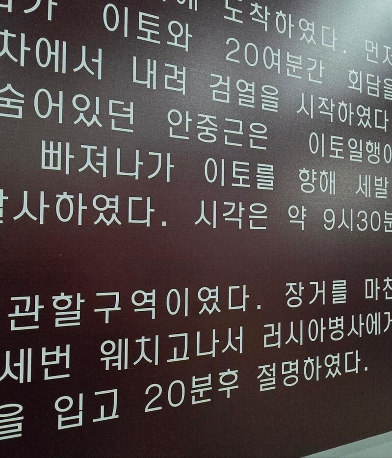 | ▲ '외치고'가 '웨치고'로 표기된 안중근 의사 기념관 한국어 설명문 [촬영 최송아] |