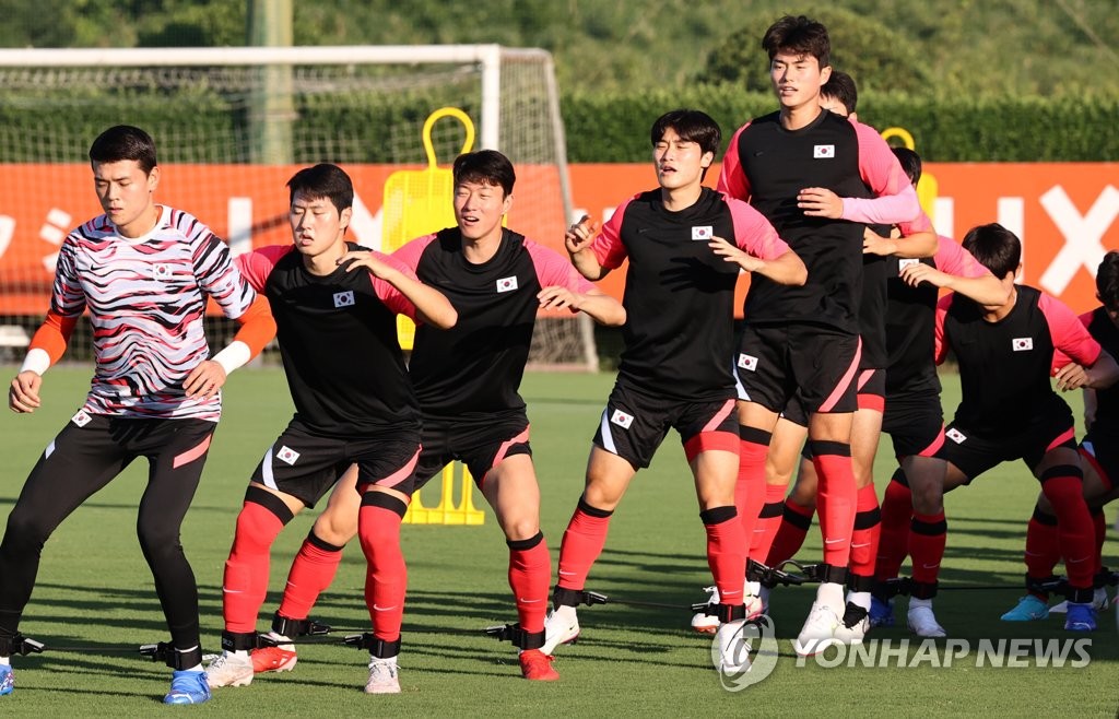 | ▲ Members of the South Korean men's Olympic football team train at Kashima Antlers Clubhouse in Kashima, Japan, on July 19, 2021. (Yonhap) |