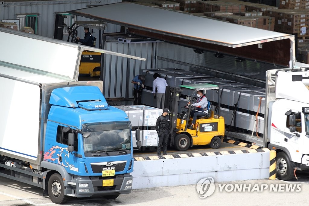 | ▲ An additional batch of Pfizer's COVID-19 vaccine arrives at Incheon International Airport, west of Seoul, on Sept. 22, 2021. (Yonhap) |