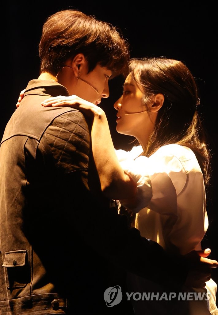 | ▲ 뮤지컬 '모래시계'의 민우혁-유리아 (서울=연합뉴스) 류효림 기자 = 배우 민우혁과 유리아가 31일 서울 구로구 대성 디큐브아트센터에서 열린 뮤지컬 모래시계 프레스콜에서 주요 장면을 시연하고 있다. 2022.5.31 ryousanta@yna.co.kr |