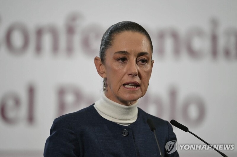 | ▲ Mexican President Claudia Sheinbaum speaks during her daily press conference at the National Palace in Mexico City on Feb. 3, 2025 in this photo released by AFP. (Yonhap) |
