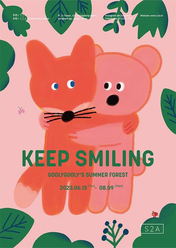 ▲ 그림책 작가 굴리굴리 개인전 '킵 스마일링' = 글로벌세아그룹이 운영하는 갤러리 S2A는 서울 강남구 소재 S2A에서 굴리굴리(김현·44) 작가의 개인전인 '킵 스마일링: 굴리굴리스 써머 포레스트'를 개최 중이라고 7일 밝혔다.