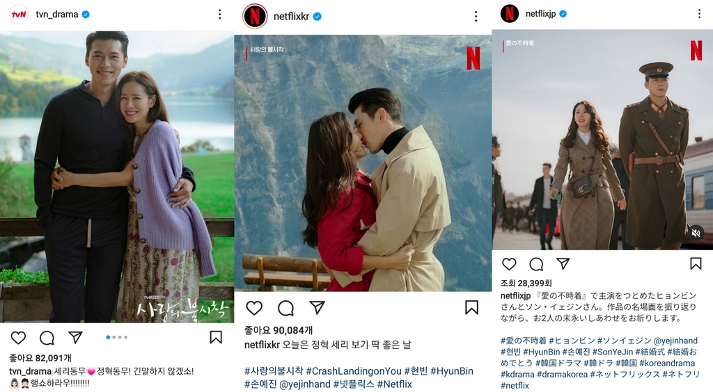tvN·넷플릭스, SNS에 '사랑의 불시착' 사진·축하 메시지 올려