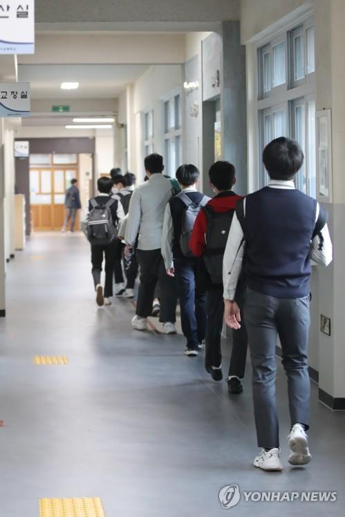 | ▲ Students enter classrooms at a middle school in Gwangju, 330 kilometers south of Seoul, on Oct. 19, 2020, as the education ministry raised the attendance cap to two-thirds for all schools in line with the government's decision to relax social distancing guidelines nationwide amid a slowdown in coronavirus outbreaks. (Yonhap) |