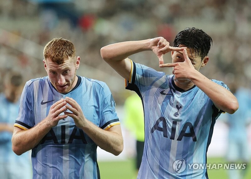 | ▲ 손흥민, '찰칵' (서울=연합뉴스) 박동주 기자 = 31일 서울월드컵경기장에서 열린 2024 쿠팡플레이 시리즈 토트넘과 팀 K리그의 경기. 토트넘 손흥민이 골을 넣은 뒤 세리머니를 하고 있다. 2024.7.31 pdj6635@yna.co.kr |
