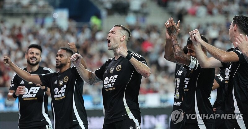 | ▲ 추가골에 신나는 팀 K리그 (서울=연합뉴스) 박동주 기자 = 31일 서울월드컵경기장에서 열린 2024 쿠팡플레이 시리즈 토트넘과 팀 K리그의 경기. 팀 K리그 일류첸코가 두번째 골을 넣고 동료와 세리머니하고 있다. 2024.7.31 pdj6635@yna.co.kr |