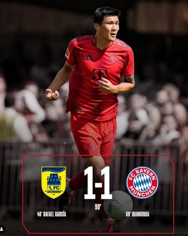 뮌헨은 28일(현지시간) 독일 윌리히에서 열린 FC뒤렌(4부리그)과 2024-2025 프리시즌 두 번째 친선 경기에서 한골씩 주고받고 비겼다.