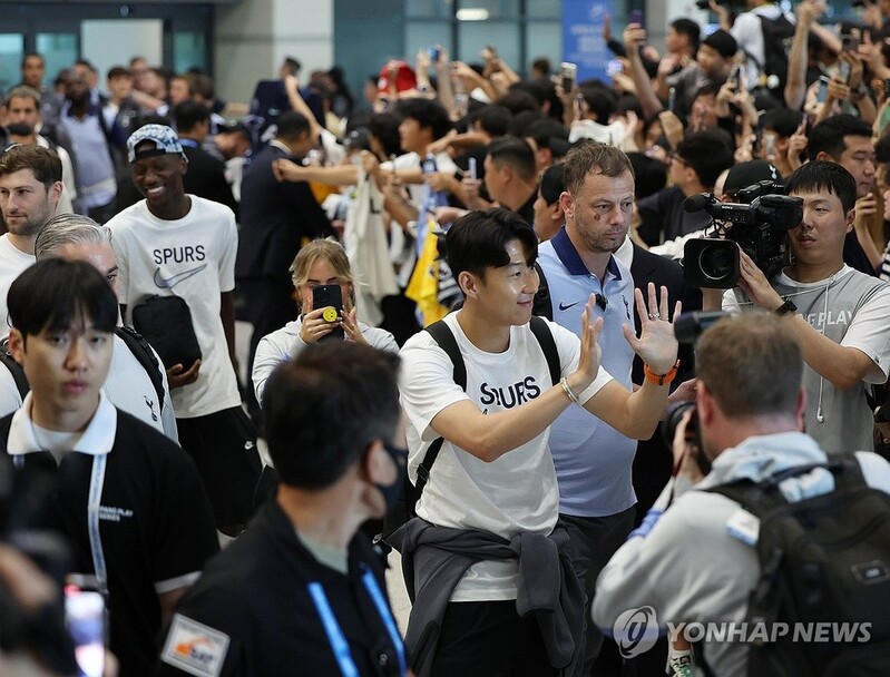 대니얼 레비 회장과 포스테코글루 감독이 앞장을 서서 입국장을 나선 토트넘 선수들은 인천국제공항을 가득 채운 팬들의 뜨거운 환호와 취재진의 카메라 플래시 세례에 환한 미소로 화답하며 입국장을 빠져나갔다.