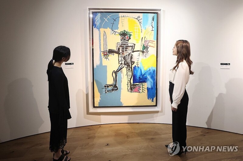 이번 전시는 규모가 크진 않지만 2021년 홍콩 경매에서 4천190만달러(당시 환율로 약 472억원)에 판매된 바스키아의 1982년작 '전사'(Warrior)가 포함돼 눈길을 끌었다. 이 작품은 현재까지 아시아 경매에서 거래된 서양 작품 중 최고가로 알려졌다.