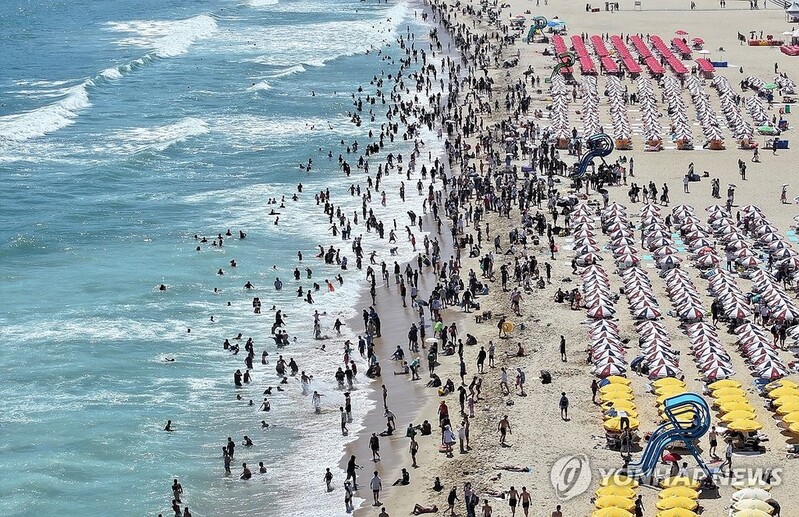 | ▲ 장마 이기고 여름 절정으로 (부산=연합뉴스) 전국에 무더위가 계속되고 있는 지난 28일 오후 부산 해운대구 해운대해수욕장이 본격적인 휴가철을 맞아 더위를 식히는 피서객들로 붐비고 있다. [연합뉴스 자료사진] |