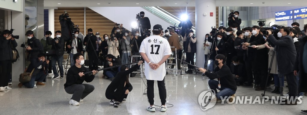 (영종도=연합뉴스) 신창용 기자 = 신세계그룹 이마트 야구단의 '영입 1호' 추신수(39)가 화려한 카메라 플레쉬 세례를 받으며 한국 땅을 밟았다.