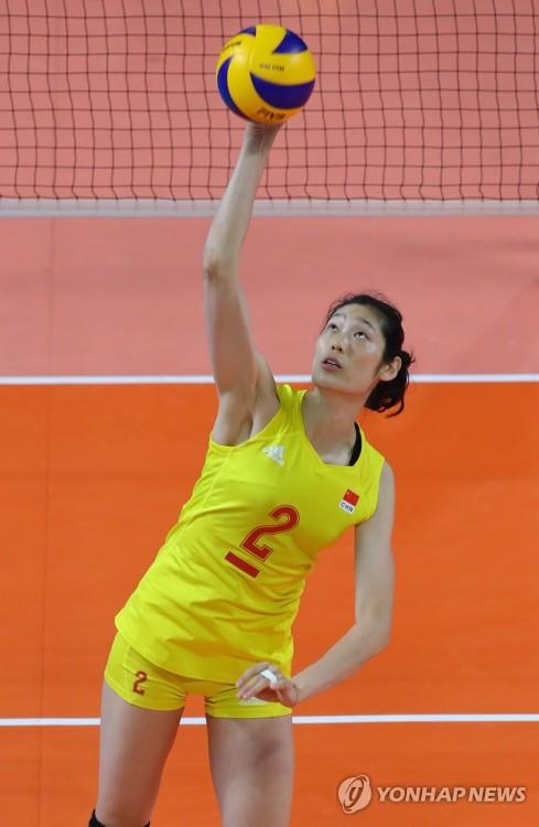 | ▲ 도쿄올림픽 중국선수단 공동기수로 나서는 주팅 [연합뉴스 자료사진] 김주성 기자 = 2018년 8월23일 오후(현지시간) 자카르타 겔로라 붕 카르노(GBK) 배구장에서 열린 2018 자카르타·팔렘방 아시안게임 여자배구 B조 예선 3차전 한국 대 중국 경기에서 중국의 주팅이 경기 전 몸을 플고 있다. 2018.8.23 utzza@yna.co.kr |
