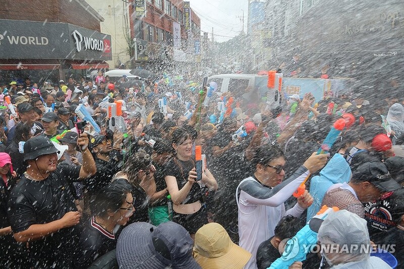 | ▲ 2024 정남진 장흥물축제 글로벌 살수대첩 거리퍼레이드 (서울=연합뉴스) 27일 개막한 2024 정남진 장흥물축제에서 글로벌 살수대첩 거리퍼레이드에 참여한 관광객들이 축제를 즐기고 있다. 2024.7.27 [정남진장흥물축제추진위원회 제공. 재판매 및 DB금지] photo@yna.co.kr |