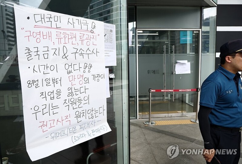 | ▲ 위메프 본사에 붙은 피해자들 항의문 [연합뉴스 자료사진] |