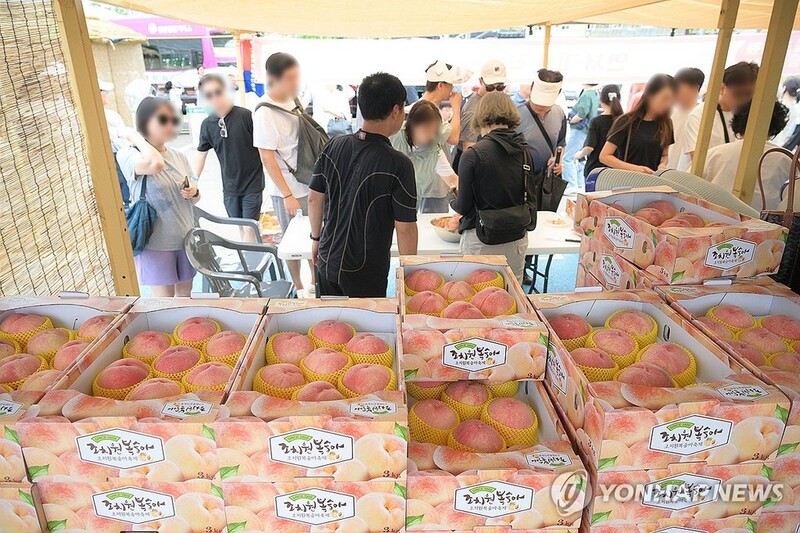 시에 따르면 이날 오전까지 누적 관람객 8만2천여명이 축제장을 찾았고, 복숭아(3㎏짜리) 1만200상자가 판매됐다.