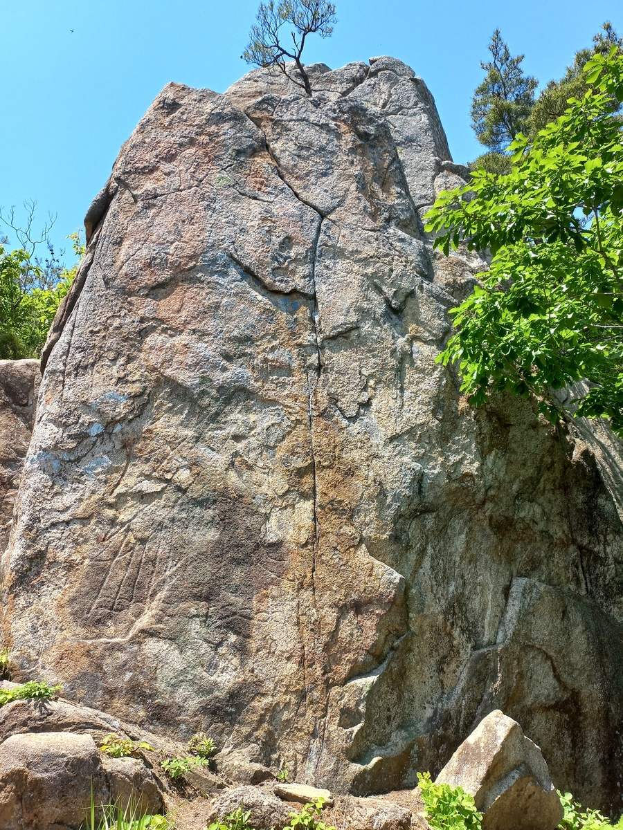 경주 남산 해발 450m 지점에 있는 마애선각입상은 높이 약 8m 바위 표면에 2.3m 크기의 선 형태로 새겨진 대형 입상이다.