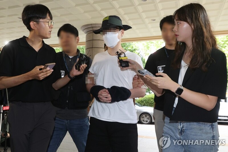 | ▲ A 38-year-old man, surnamed Baek, speaks to reporters on Aug. 1, 2024, ahead of a court hearing at the Seoul Western District Court regarding an arrest warrant sought for him for slashing a neighbor to death with a Japanese longsword. (Yonhap) |