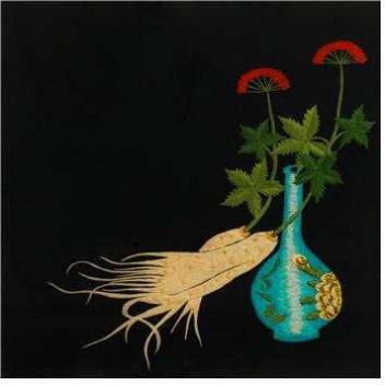 | ▲ 인삼 문양이 새겨진 자수 [문화재청 제공, 재판매 및 DB 금지] |