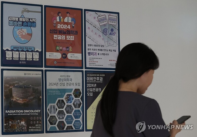 ▲ Posters announcing the recruitment of junior doctors are posted on a wall of a general hospital in Seoul on July 29, 2024. (Yonhap) |