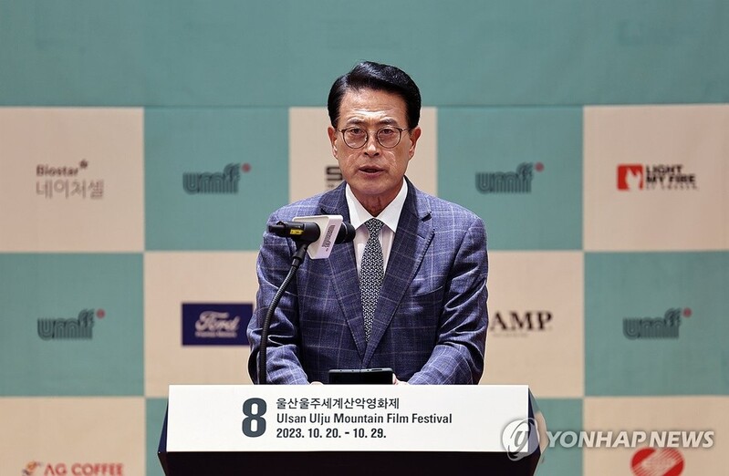| ▲ 인사말 하는 이순걸 울주군수 (울산=연합뉴스) 장지현 기자 = 25일 오전 울산시청 시민홀에서 열린 제8회 울산울주세계산악영화제 기자회견에서 영화제 이사장인 이순걸 울주군수가 인사말하고 있다. 2023.9.25 jjang23@yna.co.kr |