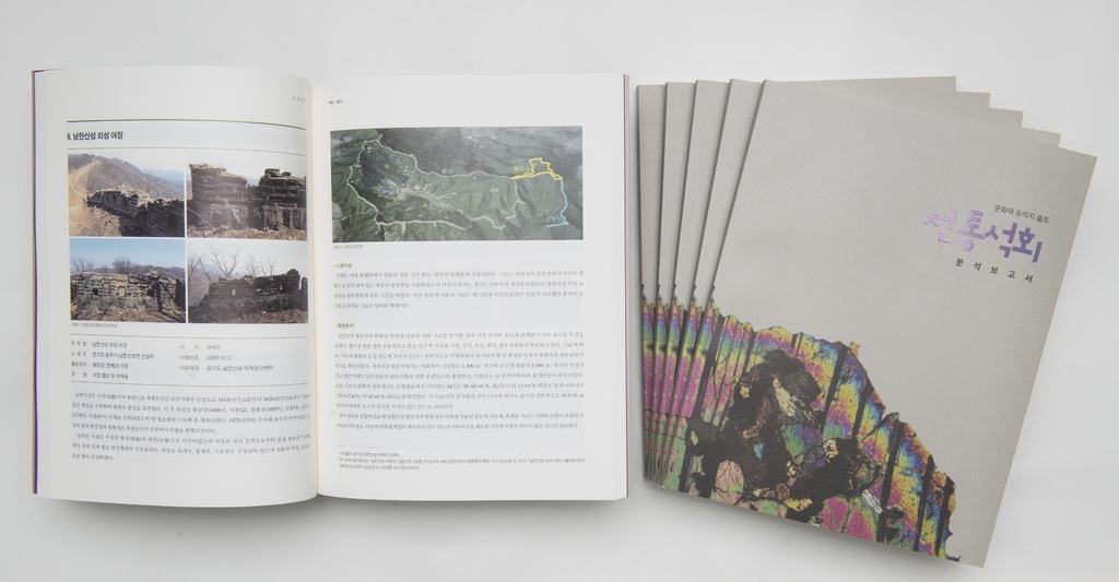 보고서에는 시대와 용도를 특정할 수 있는 전통석회 시료 58점의 분석 결과가 수록됐다. 삼국시대부터 조선시대까지 성곽, 건축물, 무덤, 온돌 등에 사용된 석회를 분석 대상으로 삼았다.