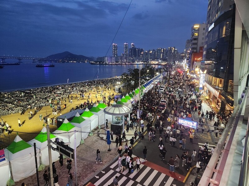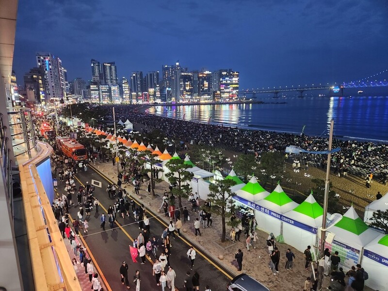 행사 2시간 전인 오후 6시는 이미 백사장과 해변로가 대부분 시민으로 들어찬 모습이었다.