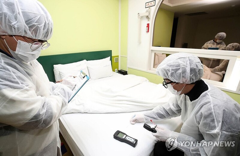 | ▲ '빈대 사전 예방' 숙박업소 대상 위생점검 (광주=연합뉴스) 8일 광주 북구의 한 숙박업소에서 북구청 보건위생과 위생관리팀 직원들이 간이오염도 측정기(ATP)를 이용해 침구류와 수건 등에 대한 오염도 측정 수치를 확인하고 위생 상태를 점검하고 있다. 북구는 수도권을 중심으로 빈대가 확산한 것을 계기로 노후 숙박업소와 목욕탕에 대해 특별 위생점검을 실시할 계획이다. 2023.11.8 [광주 북구 제공. 재판매 및 DB 금지] iny@yna.co.kr |
