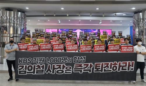 '새로운 KBS를 위한 KBS 직원과 현업방송인 공동투쟁위원회'는 김 사장과 이사진의 총사퇴를 요구하는 서명 운동을 벌여 이날까지 직원 1천101명의 서명을 받았다고 밝혔다.