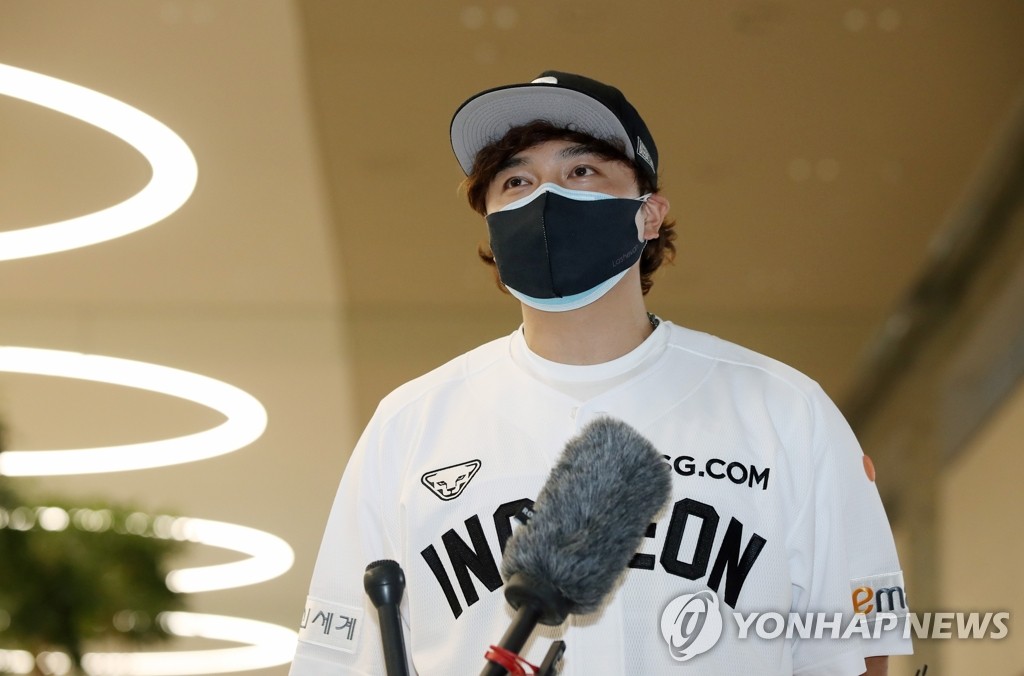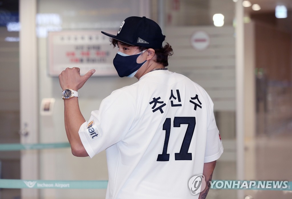 Choo arrived here two days after signing a 2.7 billion won (US$2.4 million) contract with the SK Wyverns of the Korea Baseball Organization (KBO), a club soon to be renamed after its recent sale to retail giant Shinsegae Group.