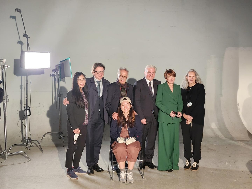 슈타인마이어 대통령 내외는 스튜디오에서 수업을 듣던 학생과 기념촬영을 하기도 했다.