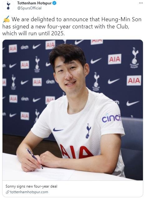 SEOUL, July 23 (Yonhap) -- Son Heung-min has signed a new four-year contract with Tottenham Hotspur, a deal that will keep the South Korean star in north London through 2025.