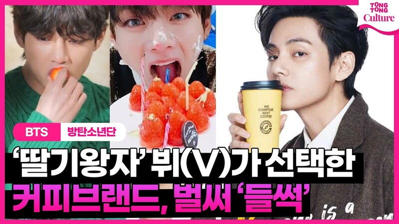 '논산딸기라떼?' ????방탄소년단 뷔 (BTS V) 사진 한 장에 커피브랜드 '들썩'
