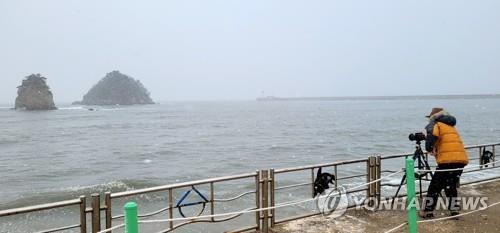| ▲ 썰렁한 해넘이 명소 안면도 꽃지해변 (태안=연합뉴스) 이은파 기자 = 경자년 마지막 날인 31일 오후 해넘이 명소인 충남 태안군 안면읍 꽃지해수욕장에서 한 관광객이 사진을 찍고 있다. 꽃지해수욕장에는 매년 이맘때 할미·할아비 바위 사이로 떨어지는 해를 찍기 위해 수백명의 사진작가들이 몰렸지만, 이날은 신종 코로나바이러스 감염증(코로나19) 확산 우려로 해넘이 행사가 취소된 데다 오후 들어 폭설이 내리고 강풍이 불어 썰렁한 모습을 보였다. 2020.12.31 |