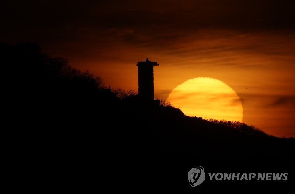| ▲ '2021년 안녕' (인천=연합뉴스) 윤태현 기자 = 2021년 신축년 마지막 날인 31일 오후 인천시 서구 정서진 인근 산 너머로 해가 지고 있다. 2021.12.31 tomatoyoon@yna.co.kr |
