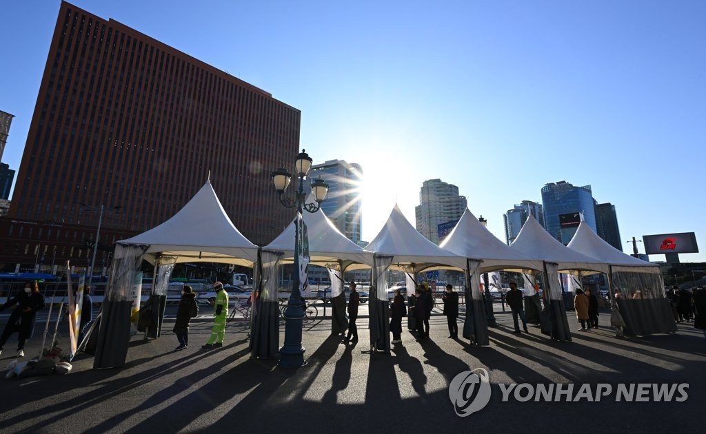 | ▲ People wait in line to get COVID-19 tests at a virus testing site near Seoul Station in central Seoul on Nov. 26, 2021. (Yonhap) |