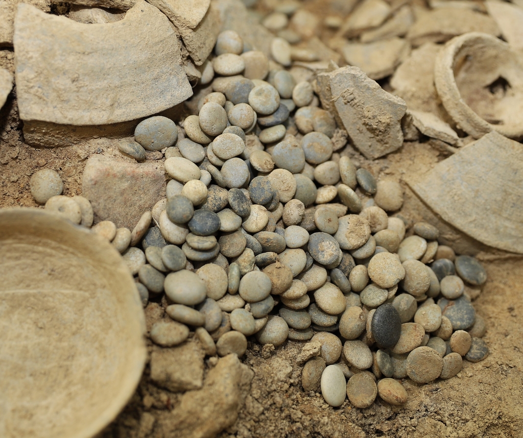 바둑돌 모양 자갈돌은 이전에도 5∼7세기 경주 신라 고분에서 나온 바 있다. 황남대총 남분에서 243점, 천마총에서 350점이 나왔다. 금관총과 용강동 고분에서도 각각 250점가량 발견됐다.