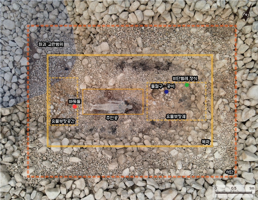 | ▲ 쪽샘 44호분 바둑돌 출토 위치 [국립경주문화재연구소 제공. 재판매 및 DB 금지] |