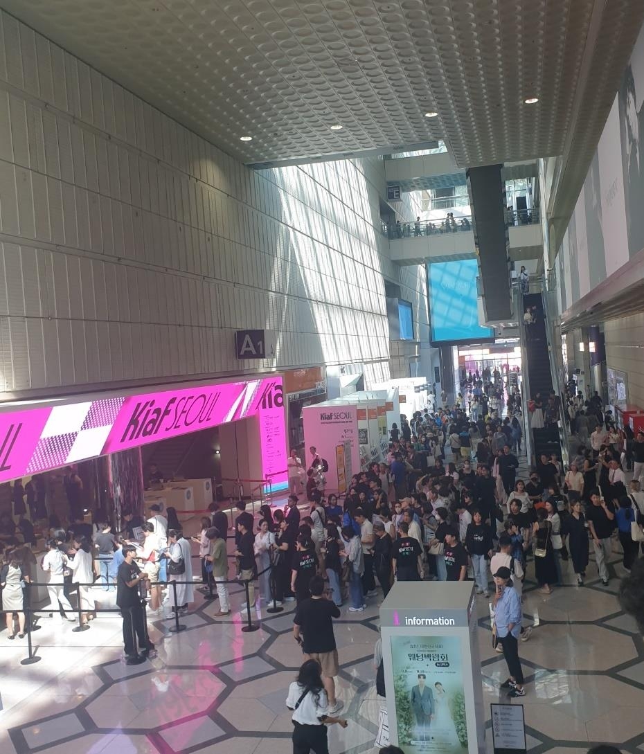 | ▲ (서울=연합뉴스) 황희경 기자 = 9일 오후 서울 코엑스의 '키아프 서울' 행사장 입장을 위해 사람들이 줄을 선 모습. 2023.9.9. zitrone@yna.co.kr |