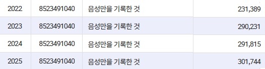 | ▲ 최근 4년간 음반 수출액 [관세청 수출입 무역통계. 재판매 및 DB 금지] 단위 = 1천달러 |